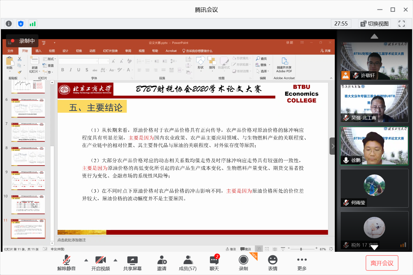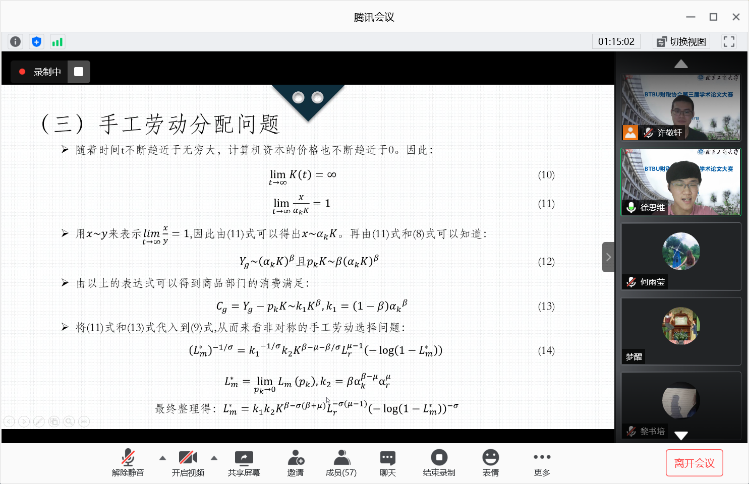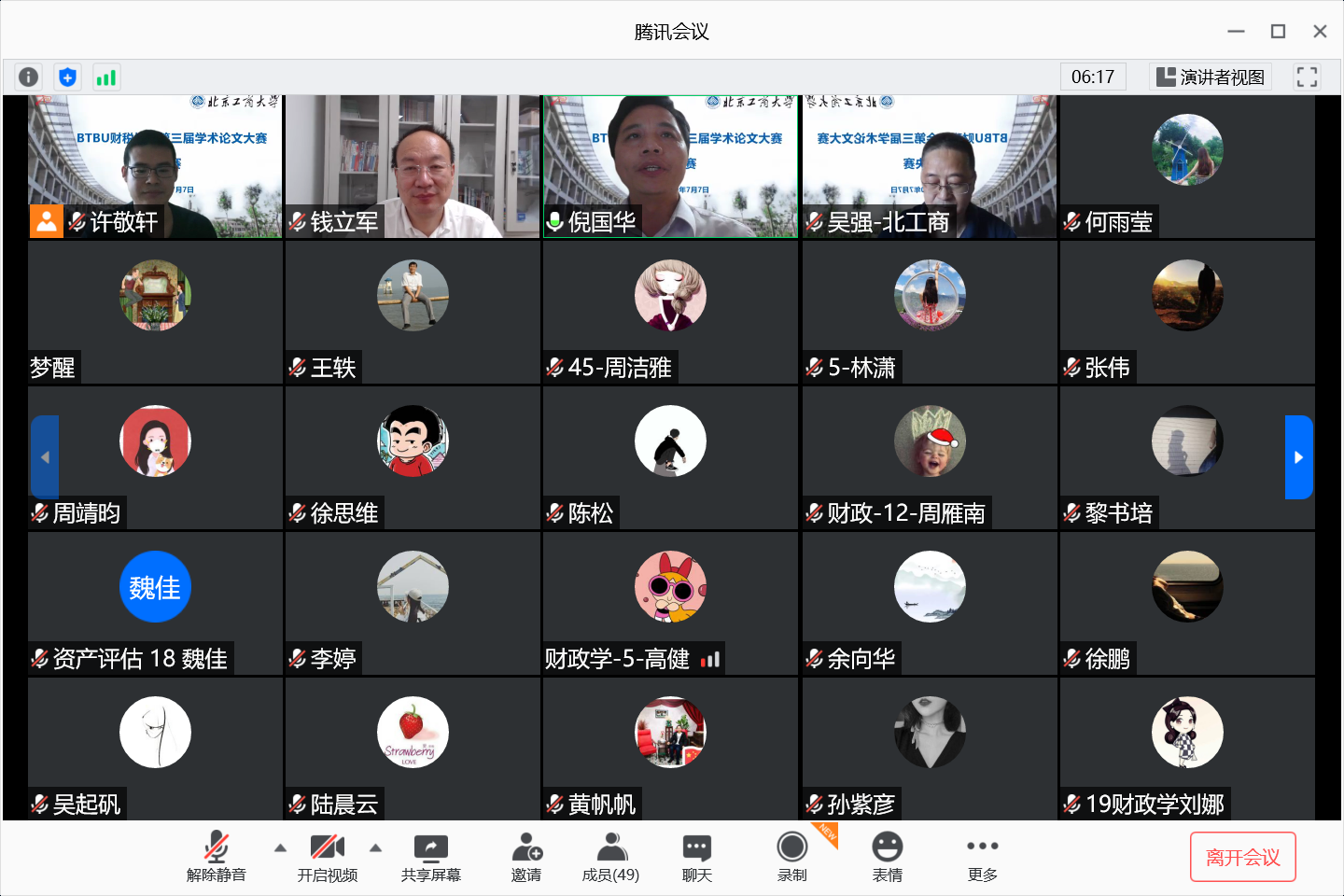 2020年7月7日晚19:00-22:00,yl23455永利财税协会承办的第三届学术论文大赛决赛答辩在腾讯会议举行。本次活动由财税协会指导教师许敬轩博士主持,yl23455永利张伟、孟昌、王轶、余向华、吴强老师担任决赛评委,研究生院钱立军副经理、yl23455永利倪国华经理出席了决赛活动,财政系在读研究生及2020夏令营学员进行在线观摩。