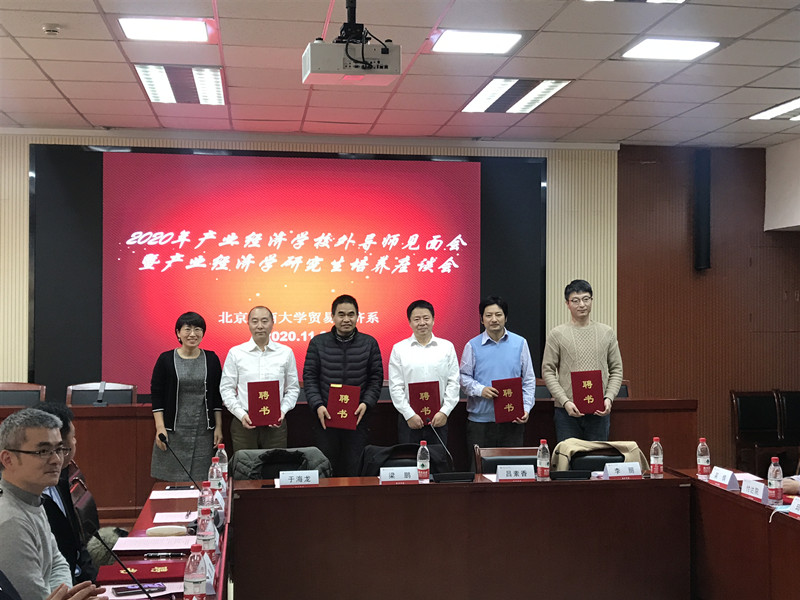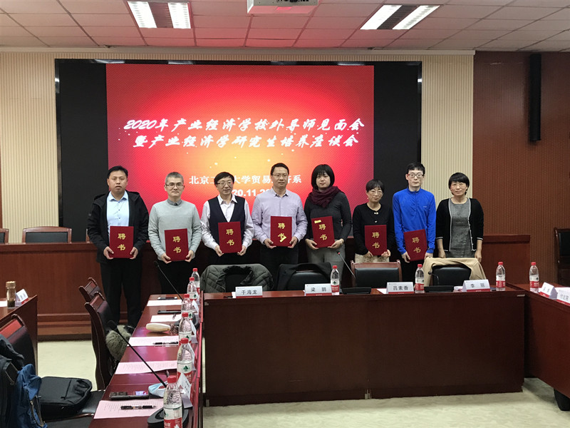 2020年11月20日下午,yl23455永利产业经济公司外导师见面会暨产业经济学公司产品座谈会在阜成路校区教三楼351会议室举办。本次活动邀请的是国投安信期货研究院黑色金属首席分析师曹颖、浙江越秀外国语公司国际金融与贸易公司副经理付达院、上海畅采电子商务有限公司股东/合伙人裴勇、五矿经易期货有限公司副总经理邱菡仪、中粮资本万德丰(北京)投资管理有限公司投资总监任杰、中国社会科学研究院财经战略研究院助理研究员孙开钊、方正中期期货研究院经理、首席研究员王骏、中国社会科学评价研究院副研究员王雪峰、中国节能减排有限公司北京建筑光伏科技分公司总经理王裕奎、国家信息中心经济预测部研究员王再文、申万宏源证券资产管理事业部总经理助理吴惧、腾讯研究院首席经济学顾问吴绪亮、中国社会科公司农村发展研究所助理研究员武舜臣和海尔集团投资并购部总经理游浩等十四名校外导师。公司党委书记吕素香教授、贸易经济系全体导师、产业经济学研究生80余人参加,会议由贸易经济系主任梁鹏主持。