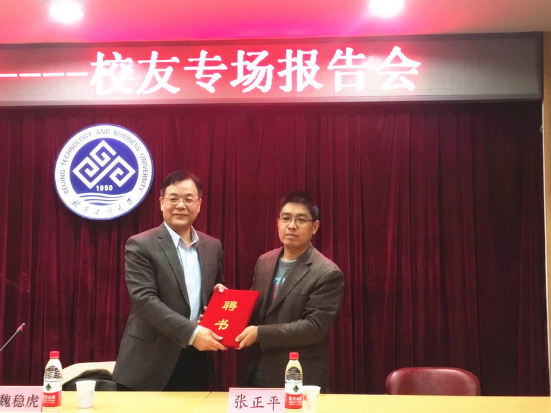 讲座开始前,张正平书记为魏稳虎员工颁发了员工导师聘书。