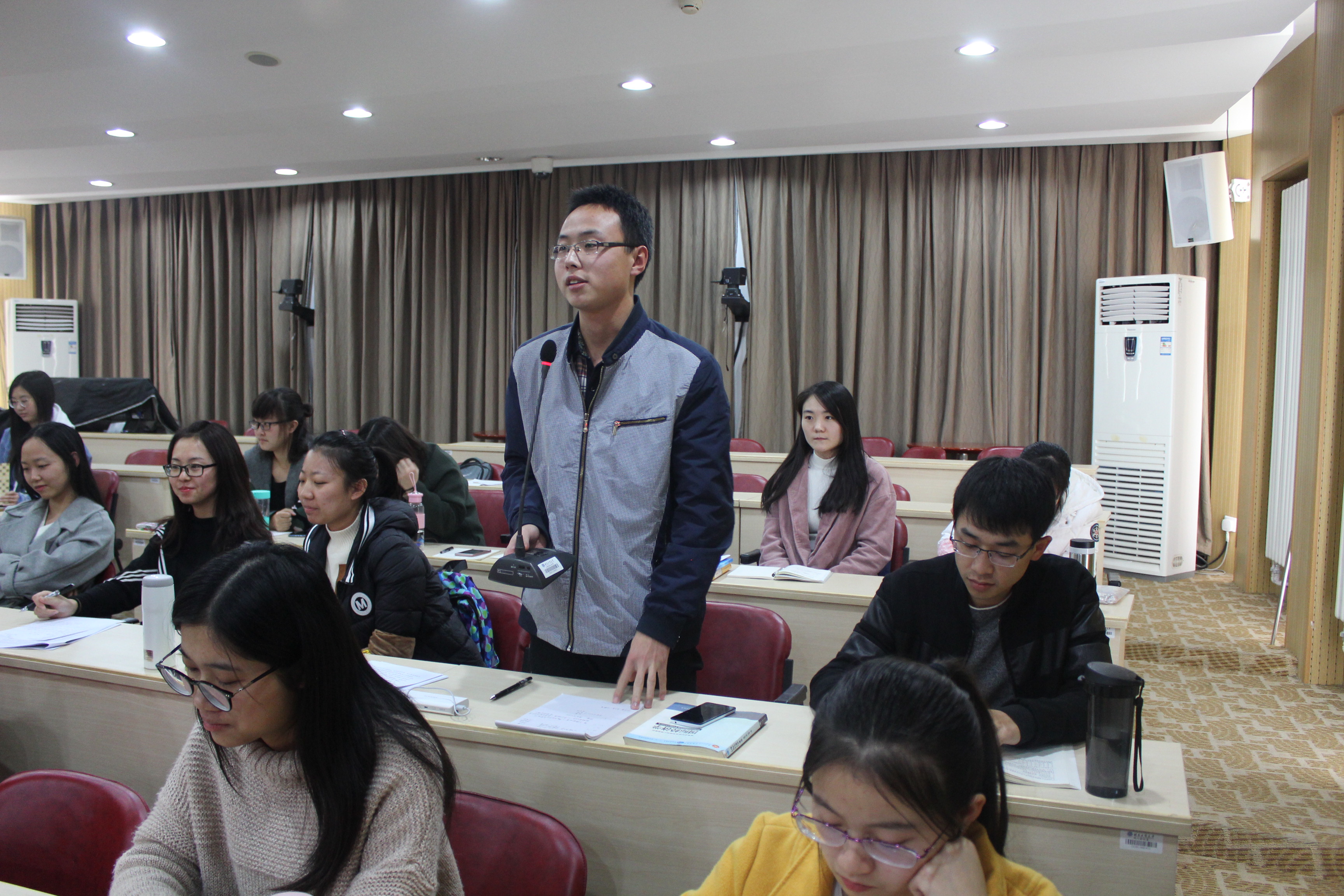 魏稳虎员工以学习党的十九大精神为主线,以经济转型为切入点,结合自身学习和工作经历,为同学们介绍了改革开放以来我国经济转型的四个重要历史阶段,阐述了“计划经济体制向市场经济体制、农业社会向工业社会”双重转型所取得的巨大成就和历史经验,解读了党的十九大首次提出“建设现代化经济体系”的深刻内涵和时代意义。魏稳虎员工用详实的案例、幽默的语言为我们剖析了中国经济转型过程中的种种机遇与挑战。他建议同学们夯实专业基础、提升综合素养、严谨学术态度、紧抓时代机遇;并寄语同学们“打铁还需自身硬”,珍惜校园时光,打牢知识基础。在之后的互动环节,魏稳虎员工耐心地解答了同学的提问,现场气氛十分活跃。