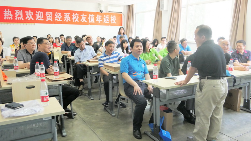 为欢迎2019年值年返校员工的到来,各系分别举办了温馨又丰富的专业活动。95货币员工为值年返校活动特意准备的“有缘有份,欢聚今朝”、“全校最棒的班”等标语展板在今天的重聚之日格外醒目;贸经系的茶话会上,老师们以老友名义向到场员工表示欢迎,并以员工时代的经历为切入点,引导员工们道出员工时代的点滴往事;金融系在老师的带领下逐渐打开话题,员工们相互之间侃侃而谈;保险系返校员工从生活中的柴米油盐聊起,叹光阴流年似水,忆同窗旧日面貌音容;经济系员工为返校活动特意制作了幻灯片,深情观看之中有着旧友重聚的温馨;统计系到场老师以情怀为端、以师兄为名,向员工传达出系里的情意;国贸系在老师简单介绍之后,各位员工便自由交流,眼含笑意之中是对员工重聚的欣喜,深情凝望之中是对往日旧事的怀念······