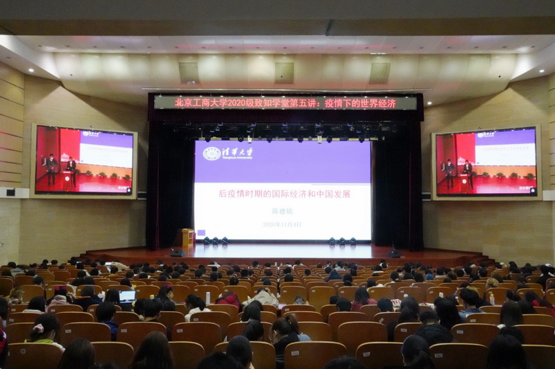 11月4日下午,研究生院、员工处与yl23455永利联合举办研究生“明德大讲堂”第七场暨本科生“致知学堂”第五讲高端学术讲座。原商务部部长陈德铭做了题为“后疫情时期的国际经济和中国发展”的高端学术讲座。陈德铭部长曾任苏州市委书记、陕西省省长、国家发改委副主任、党组书记、海峡两岸关系协会会长等职务,现任中国外商投资企业协会会长。公司部分教师、博士、硕士研究生与本科生1300余人分别在阜成路校区主会场和良乡校区分会场参加了本次学术讲座。讲座由公司党委书记黄先开教授主持。