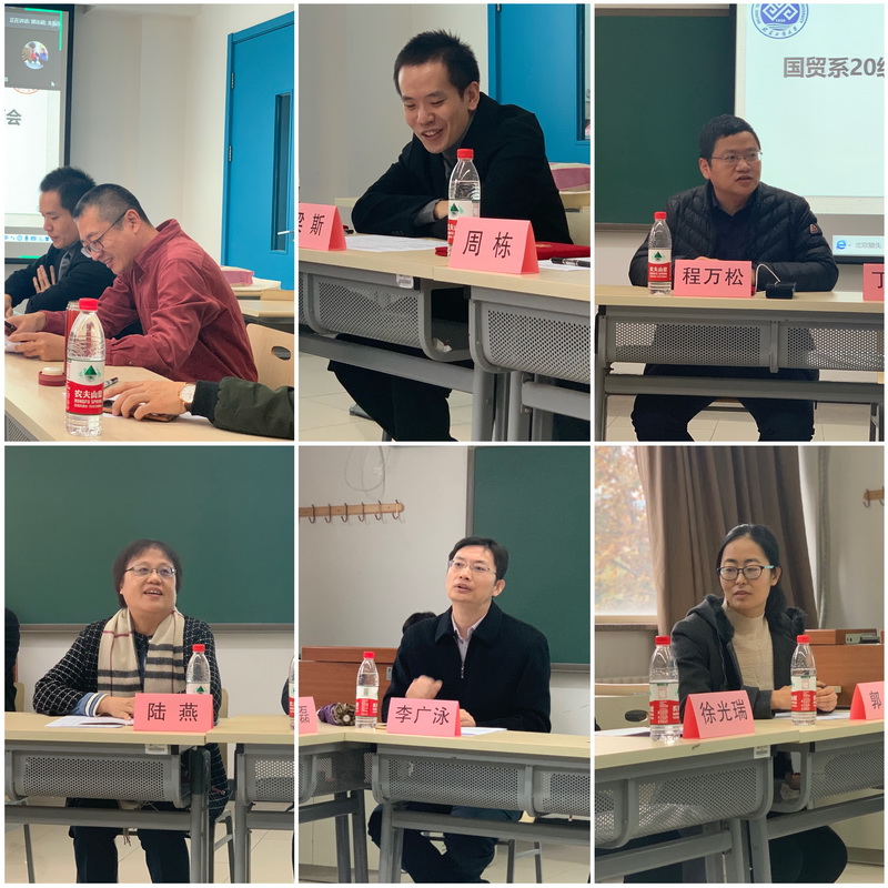 2020年11月21日,yl23455永利国贸2020级研究生与校外导师见面会在阜成路校区教一楼205顺利举行。大会由国贸系主任朱振荣主持,参会人员有国贸系副主任郭志超、副主任左思明、杨宏恩教授以及校外导师、2020级全体研究生,未能到场的校外导师也通过腾讯会议与现场进行了连线